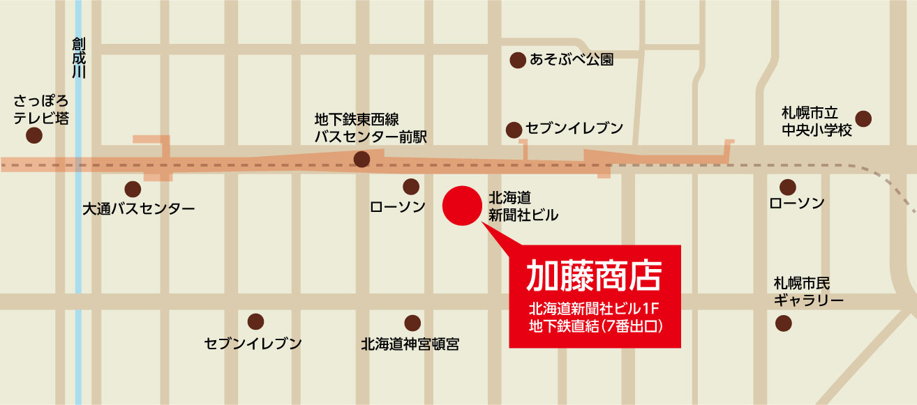 - 住所 札幌市中央区大通り東4丁目1番地 北海道新聞社ビル1F TEL: 011-231-5987